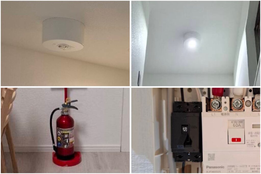 - 特小、誘導灯、非常用照明、消火器